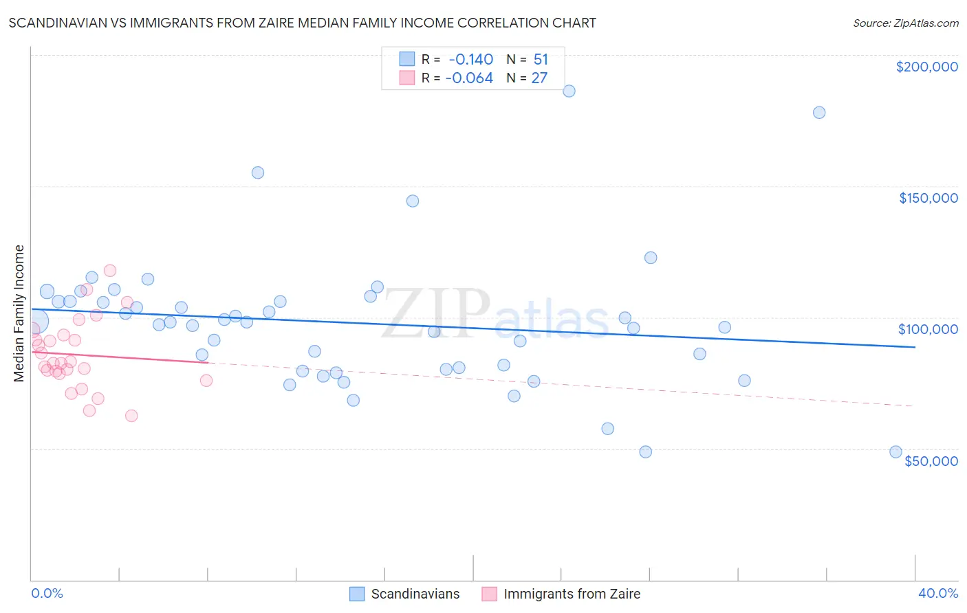 Scandinavian vs Immigrants from Zaire Median Family Income Correlation Chart