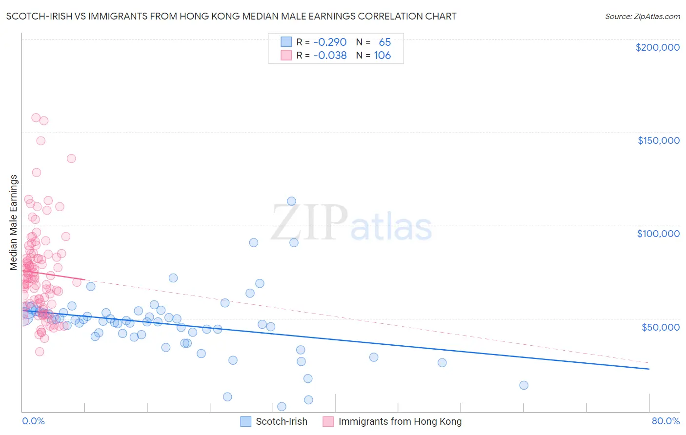 Scotch-Irish vs Immigrants from Hong Kong Median Male Earnings Correlation Chart