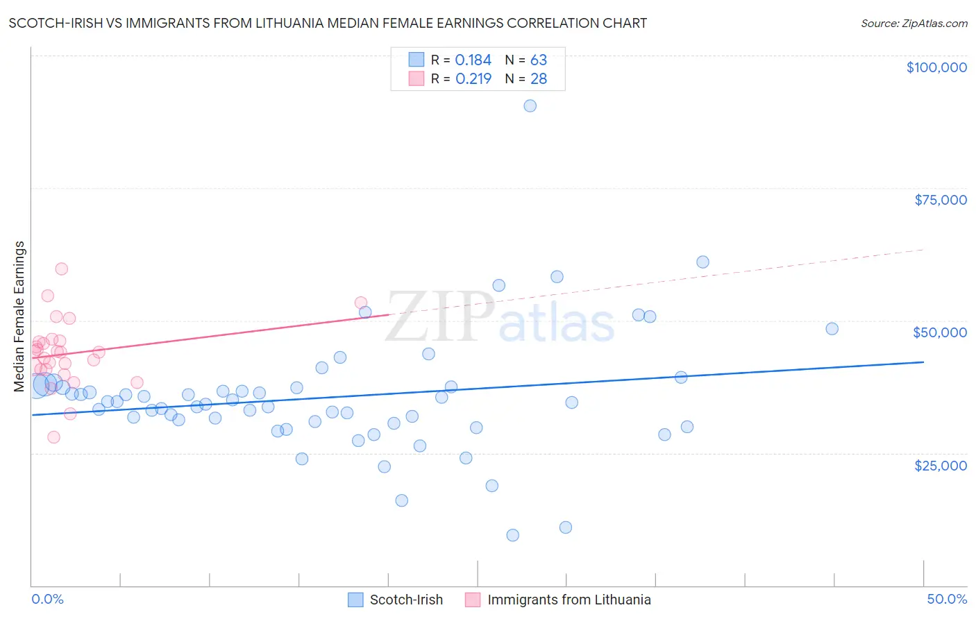Scotch-Irish vs Immigrants from Lithuania Median Female Earnings Correlation Chart