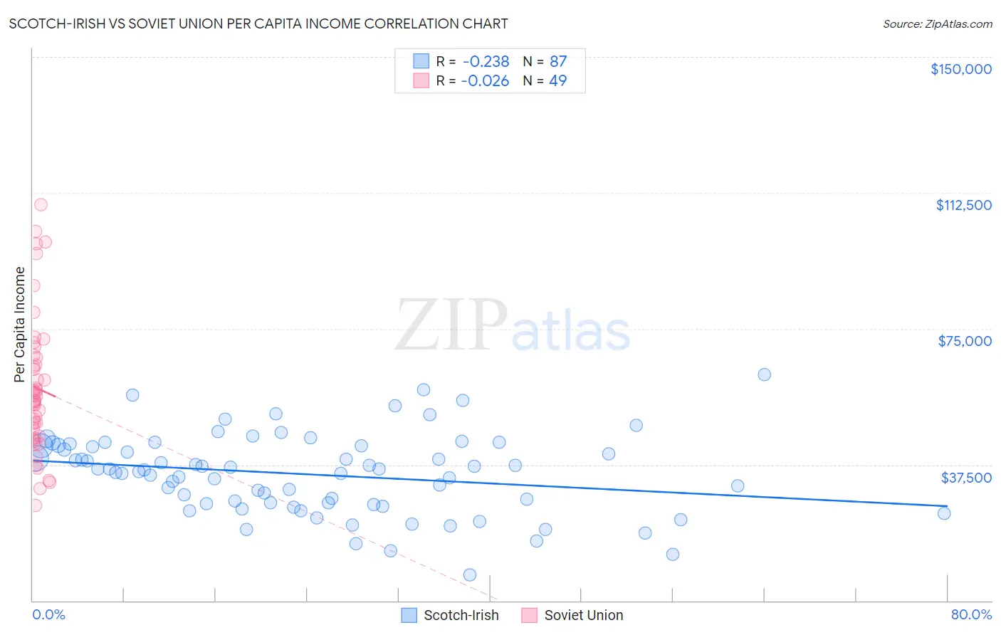 Scotch-Irish vs Soviet Union Per Capita Income Correlation Chart
