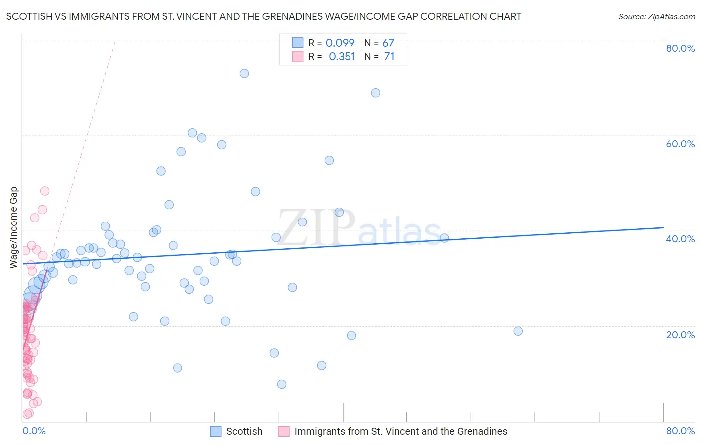 Scottish vs Immigrants from St. Vincent and the Grenadines Wage/Income Gap Correlation Chart