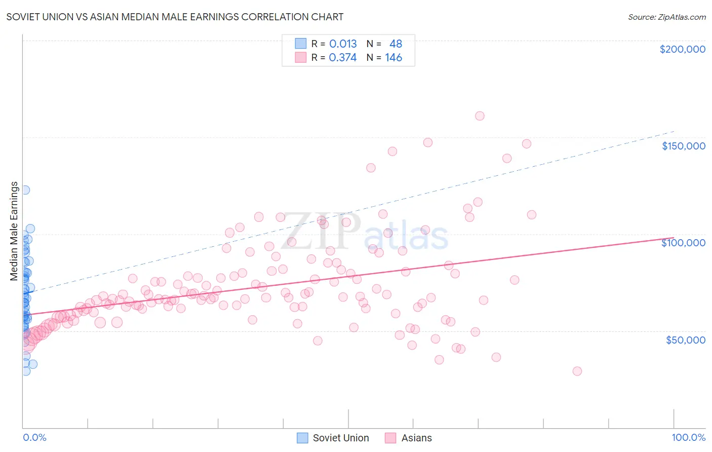Soviet Union vs Asian Median Male Earnings Correlation Chart