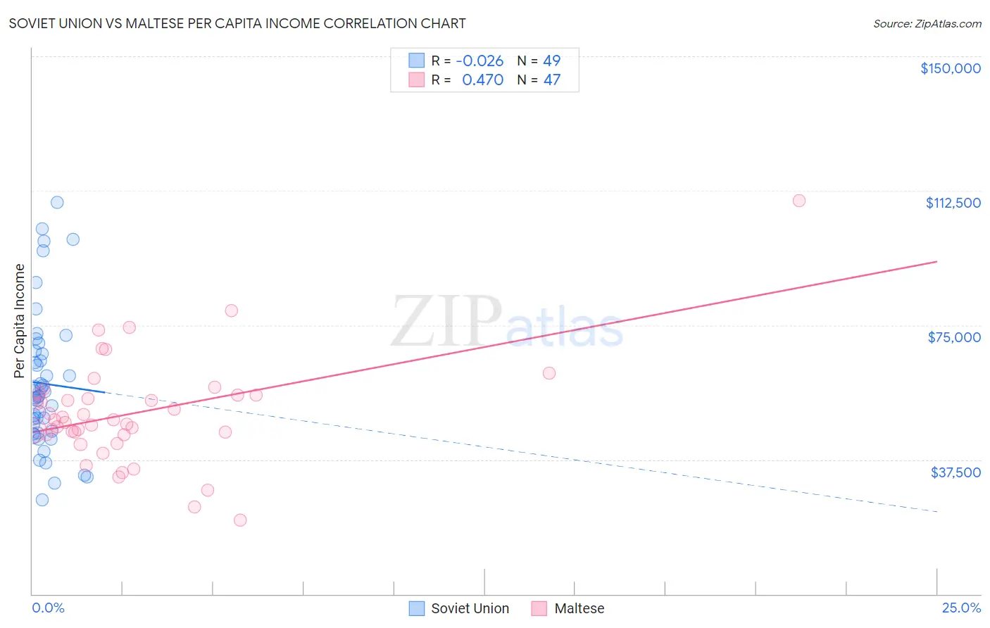 Soviet Union vs Maltese Per Capita Income Correlation Chart