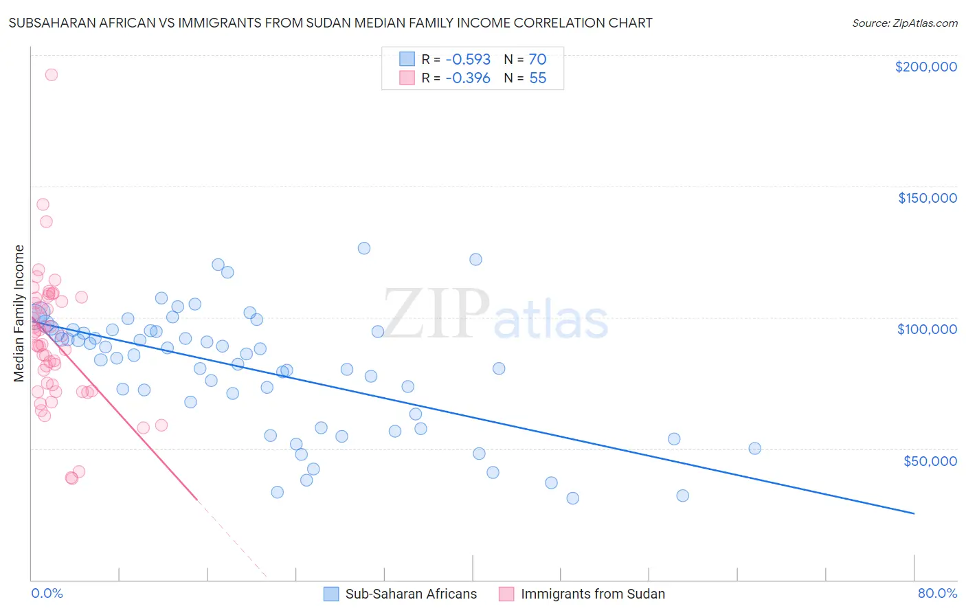 Subsaharan African vs Immigrants from Sudan Median Family Income Correlation Chart