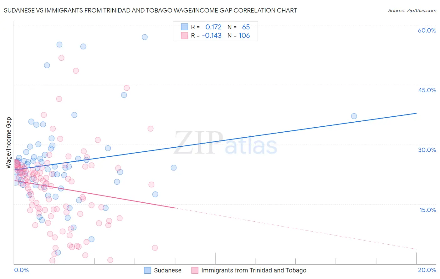 Sudanese vs Immigrants from Trinidad and Tobago Wage/Income Gap Correlation Chart