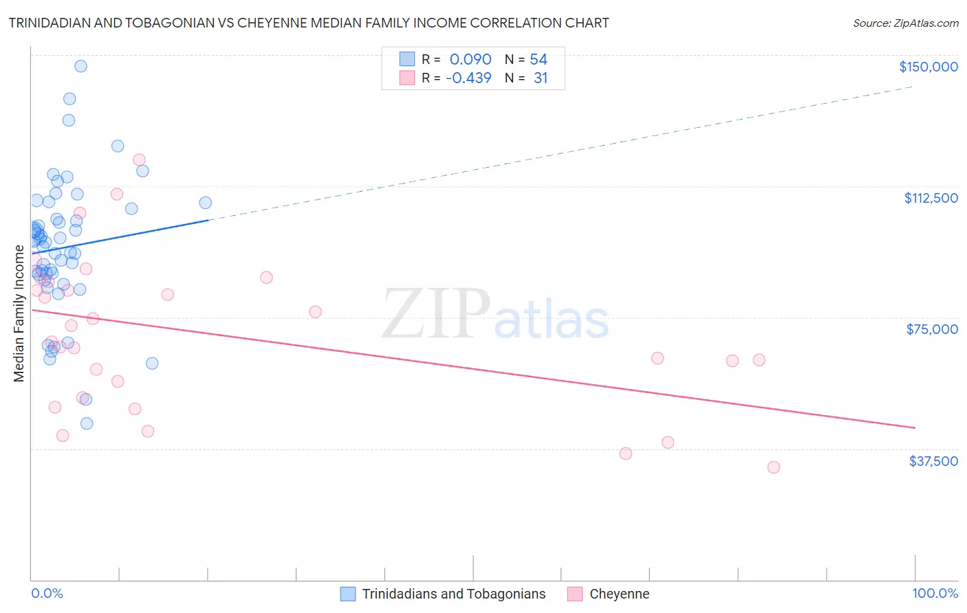 Trinidadian and Tobagonian vs Cheyenne Median Family Income Correlation Chart