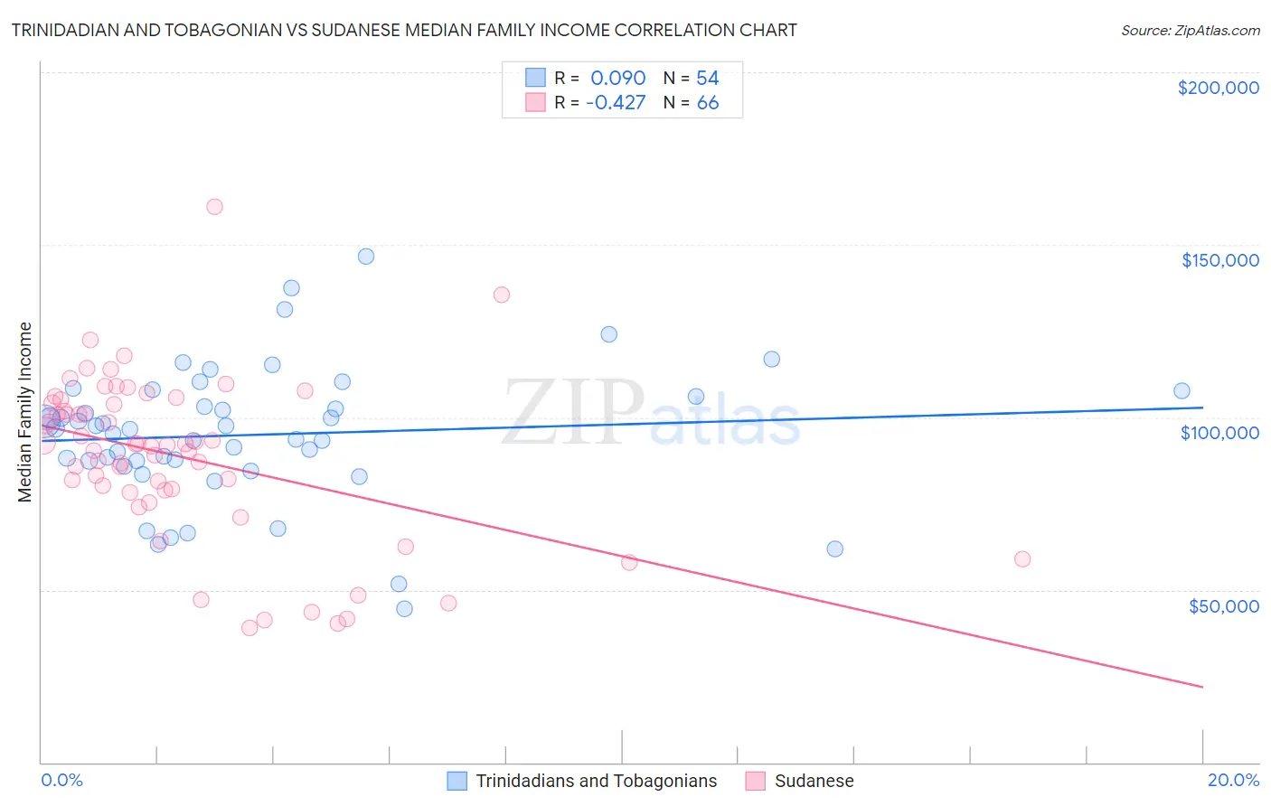 Trinidadian and Tobagonian vs Sudanese Median Family Income Correlation Chart