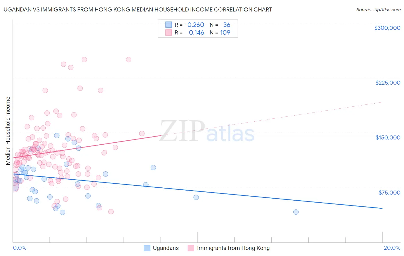 Ugandan vs Immigrants from Hong Kong Median Household Income Correlation Chart
