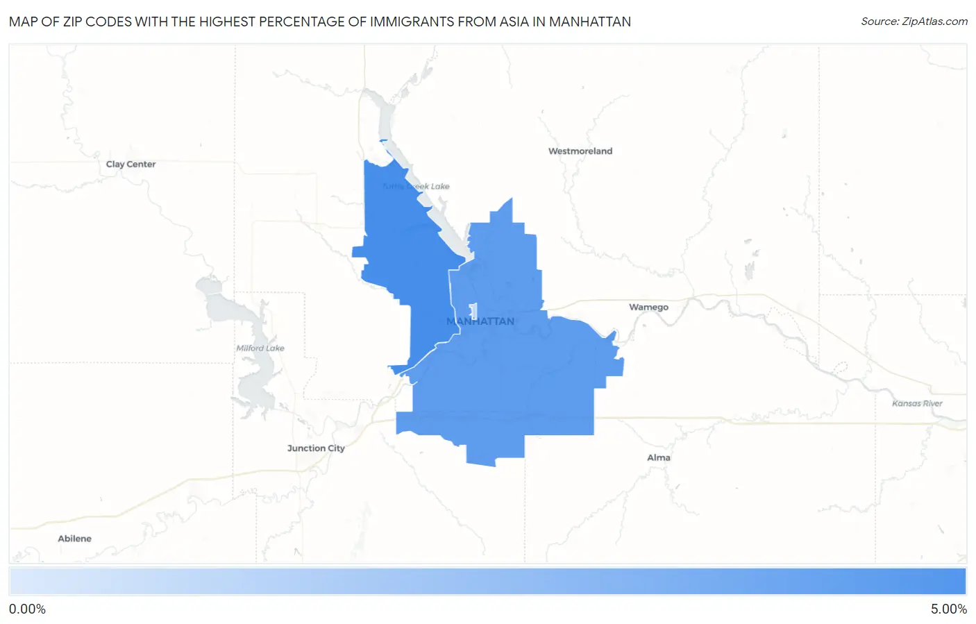 Zip Codes with the Highest Percentage of Immigrants from Asia in Manhattan, KS