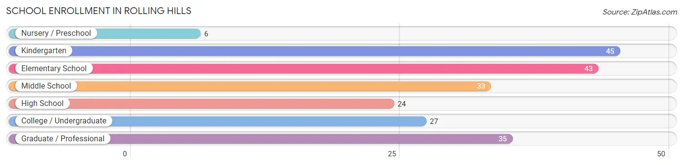 Average Earnings in Rolling Hills are $43,947, $43,250 for men and $44,722 for women, a difference of 3.3%.