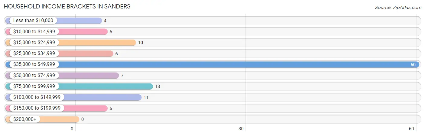 Median Household Income in Sanders is $36,557.