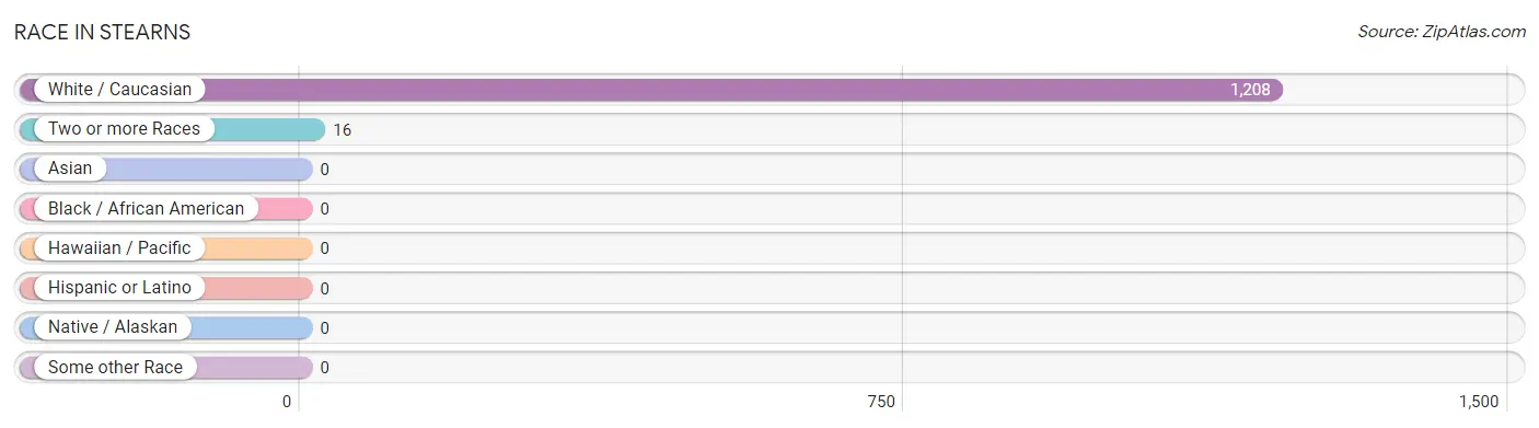 As of the 2010 census, the population of Stearns was 1,039. The racial makeup of the town was 97.2% White, 0.9% African American, 0.2% Native American, 0.2% Asian, 0.1% Pacific Islander, 0.6% from other races, and 0.8% from two or more races. The median household income in Stearns was $25,000, and the median family income was $30,000. The per capita income in Stearns was $14,000.
