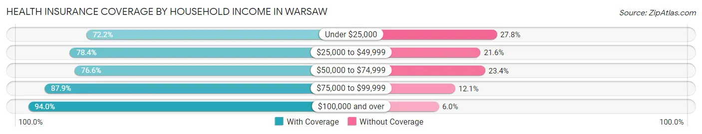 Per Capita Income in Warsaw is $28,656, while median incomes of families and households are $65,273 and $52,240 respectively.