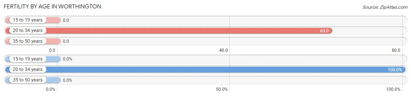 There are 97.70 Males per 100 Females in Worthington.