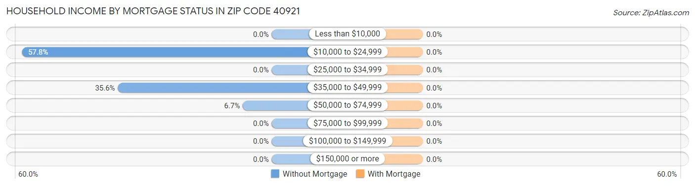 Per Capita Income in Zip Code 40921 is $15,307, while median incomes of families and households are $37,083 and $23,750 respectively.
