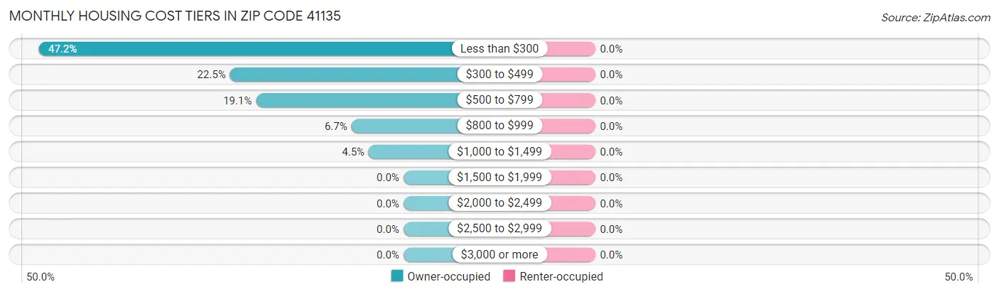 Per Capita Income in Zip Code 41135 is $19,384, while median incomes of families and households are $64,732 and $33,235 respectively.