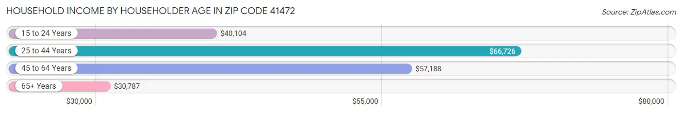 Per Capita Income in Zip Code 41472 is $23,030, while median incomes of families and households are $61,686 and $46,917 respectively.