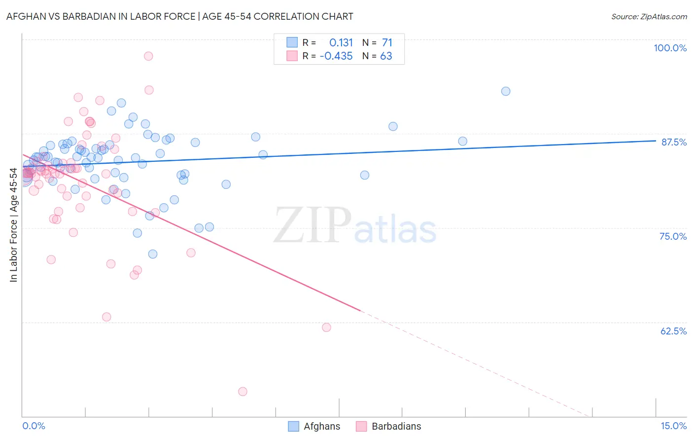 Afghan vs Barbadian In Labor Force | Age 45-54 Correlation Chart