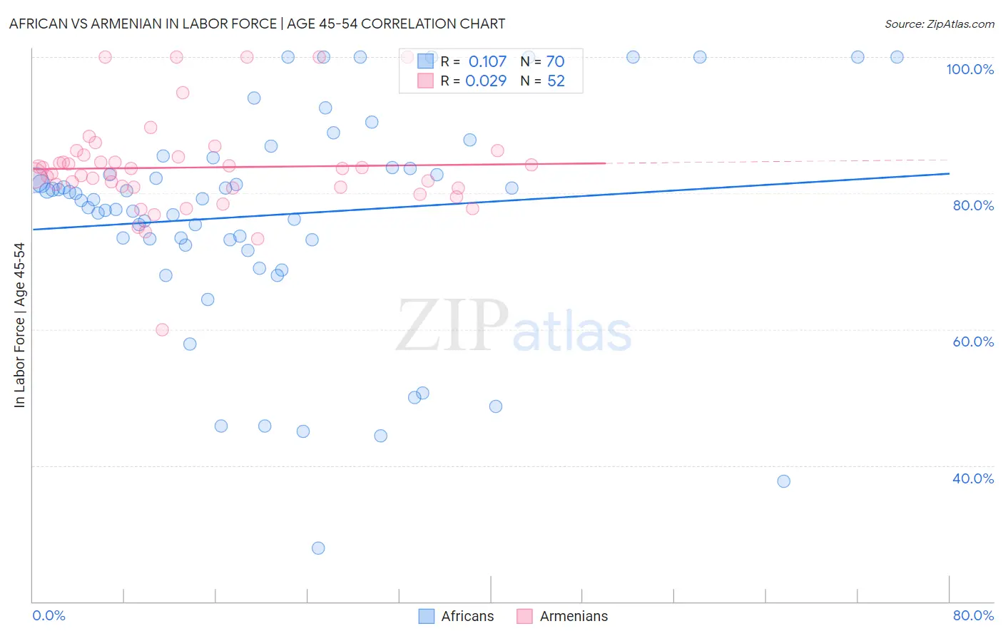 African vs Armenian In Labor Force | Age 45-54 Correlation Chart