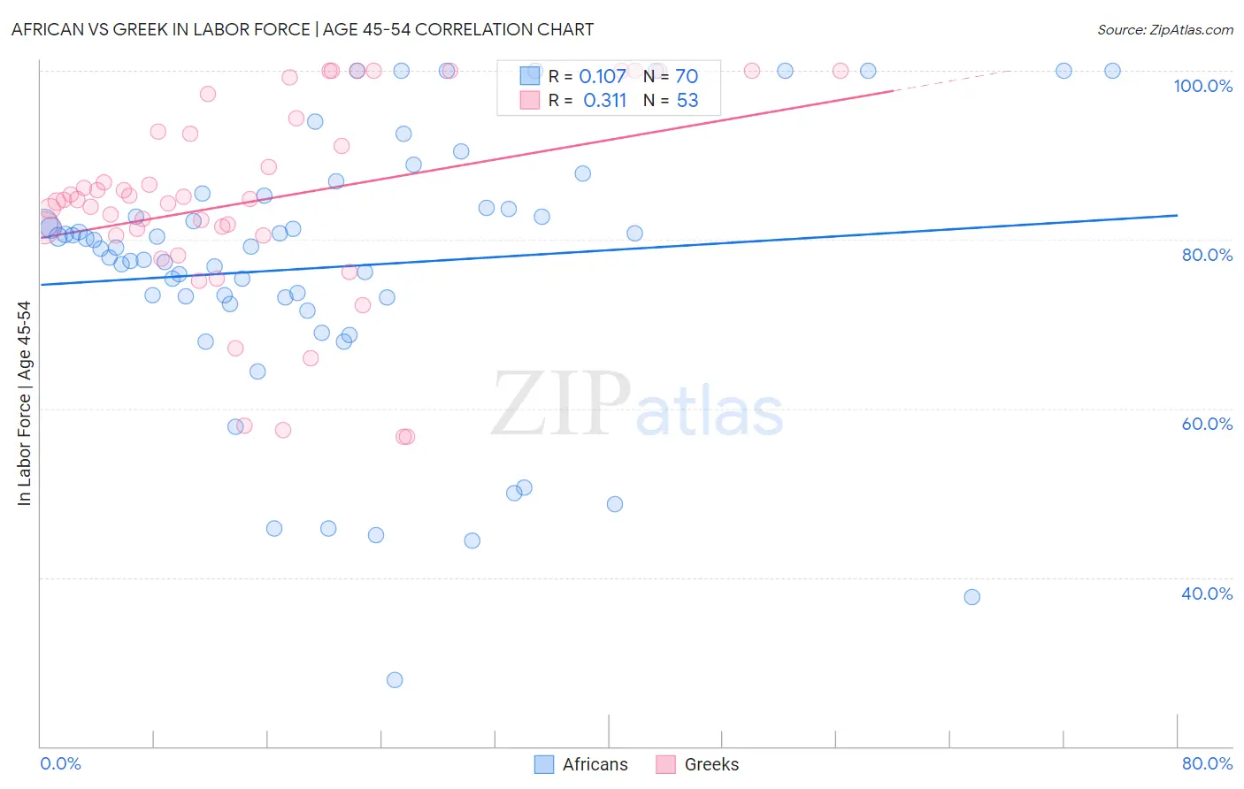 African vs Greek In Labor Force | Age 45-54 Correlation Chart
