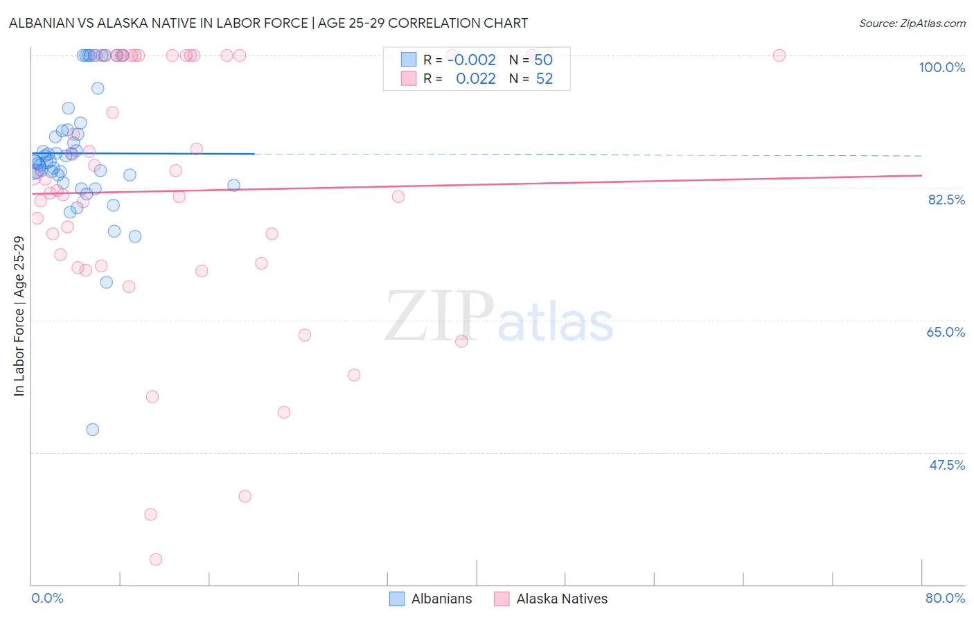 Albanian vs Alaska Native In Labor Force | Age 25-29 Correlation Chart