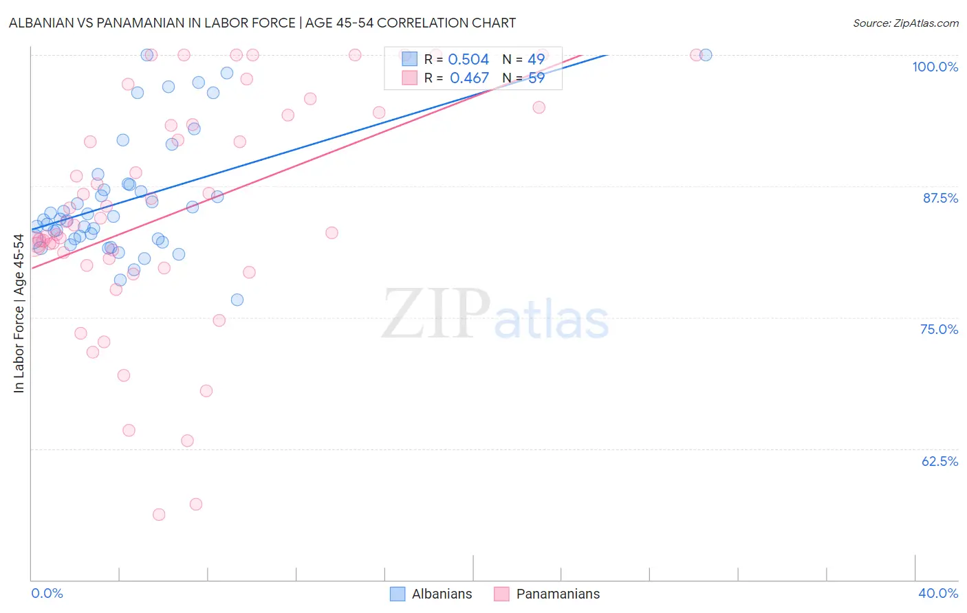 Albanian vs Panamanian In Labor Force | Age 45-54 Correlation Chart