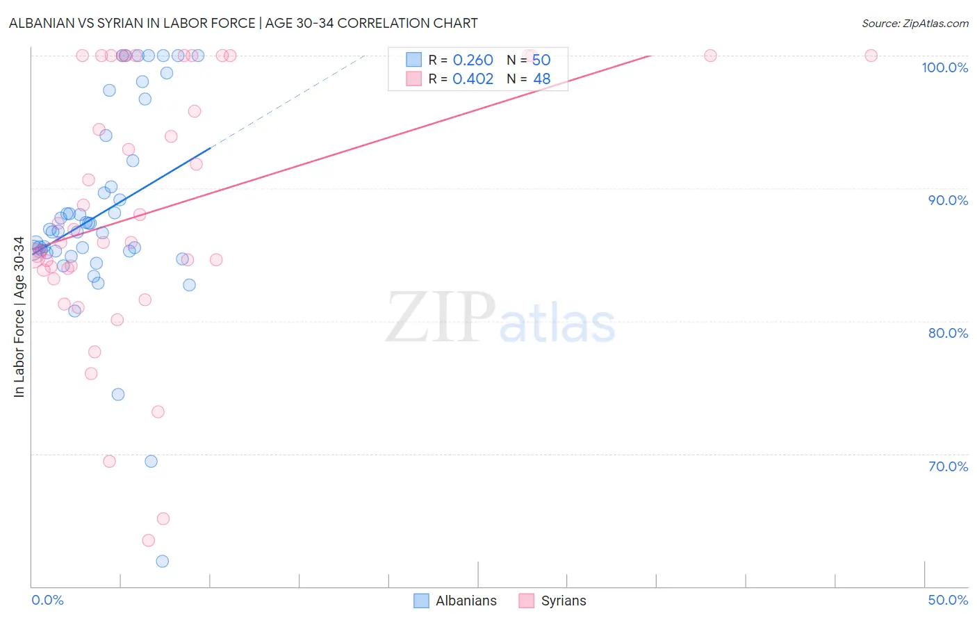 Albanian vs Syrian In Labor Force | Age 30-34 Correlation Chart