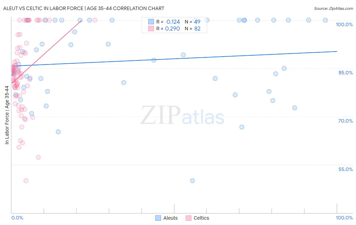 Aleut vs Celtic In Labor Force | Age 35-44 Correlation Chart