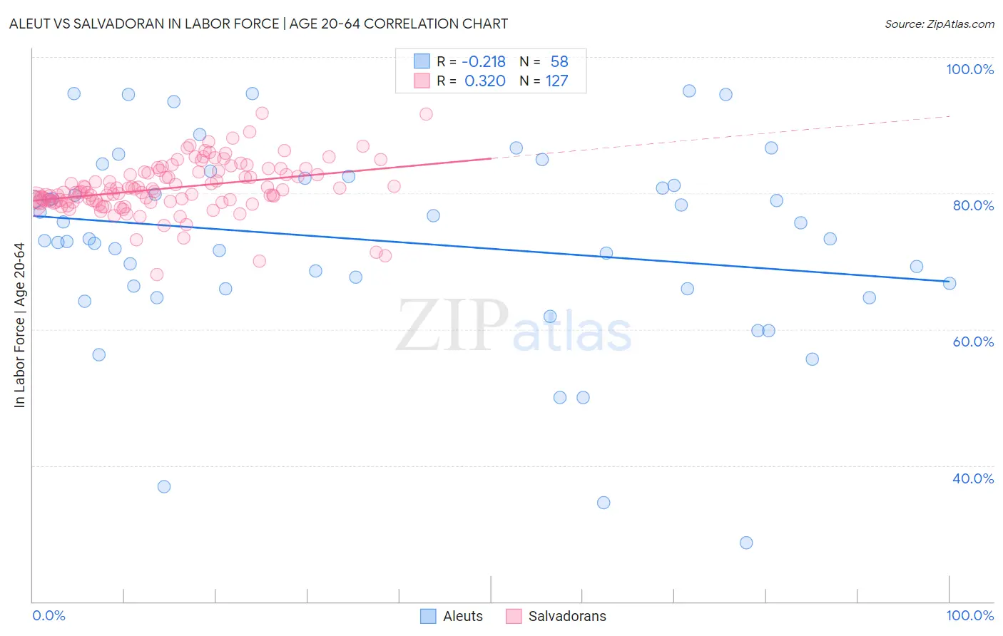 Aleut vs Salvadoran In Labor Force | Age 20-64 Correlation Chart