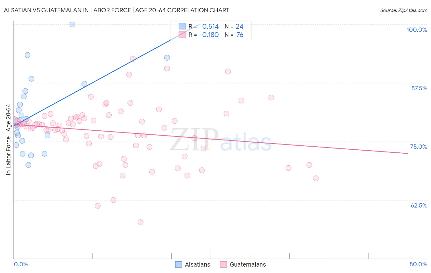 Alsatian vs Guatemalan In Labor Force | Age 20-64 Correlation Chart