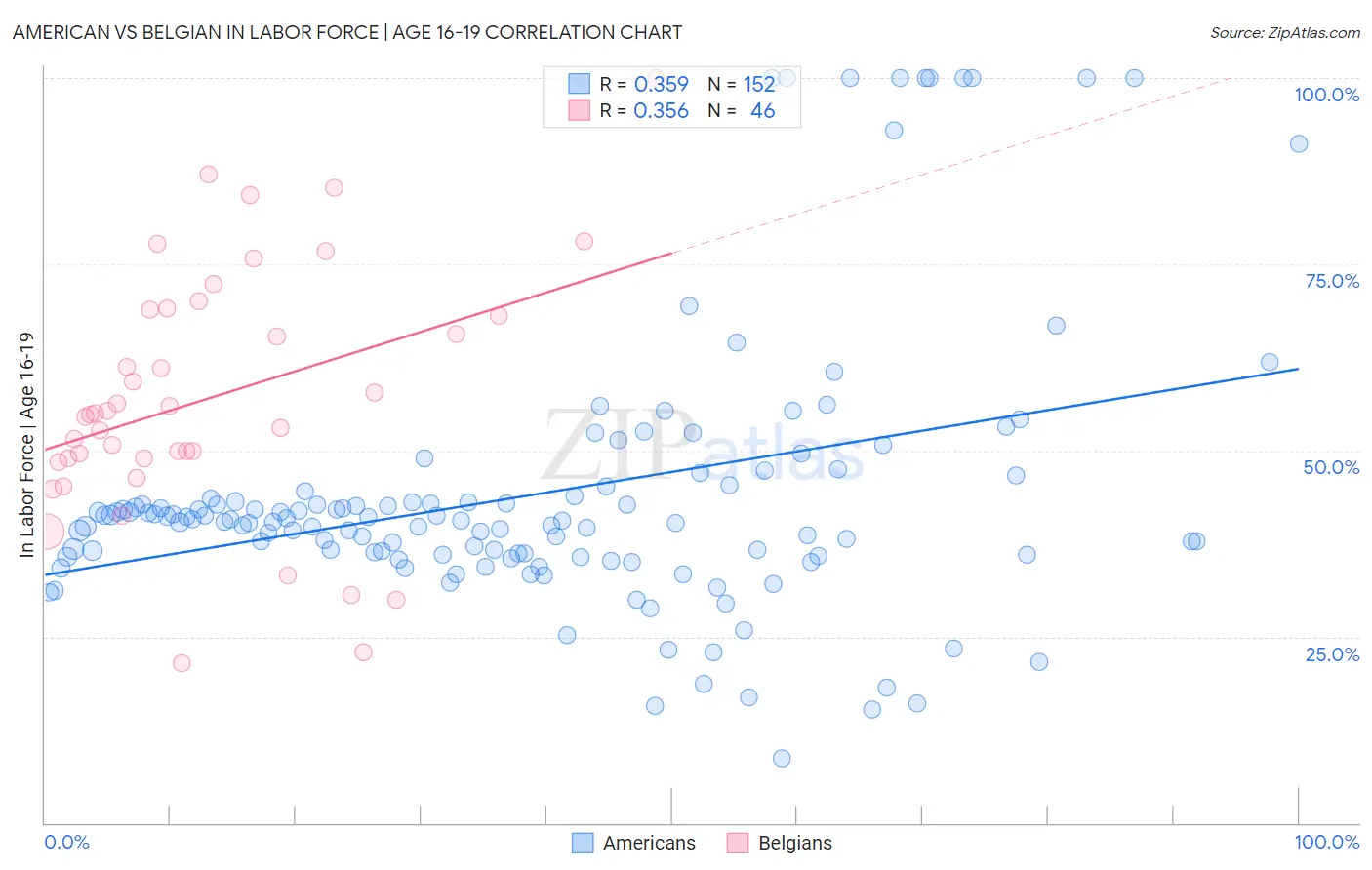 American vs Belgian In Labor Force | Age 16-19 Correlation Chart