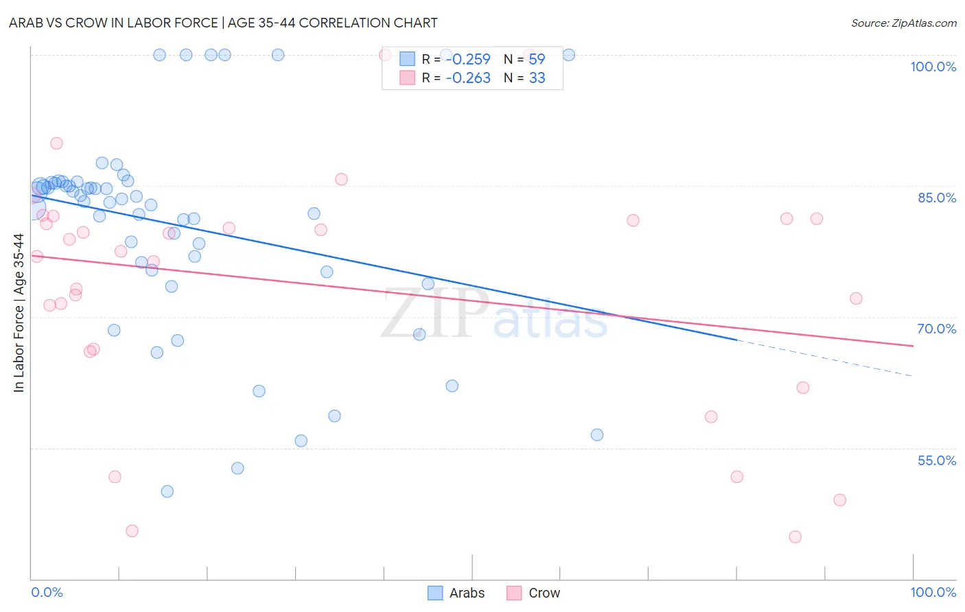 Arab vs Crow In Labor Force | Age 35-44 Correlation Chart