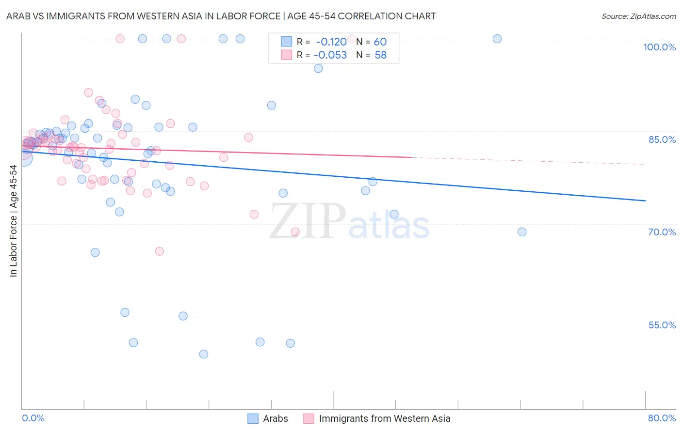 Demographics Similar to Arabs and Immigrants from Western Asia by In Labor Force | Age 45-54