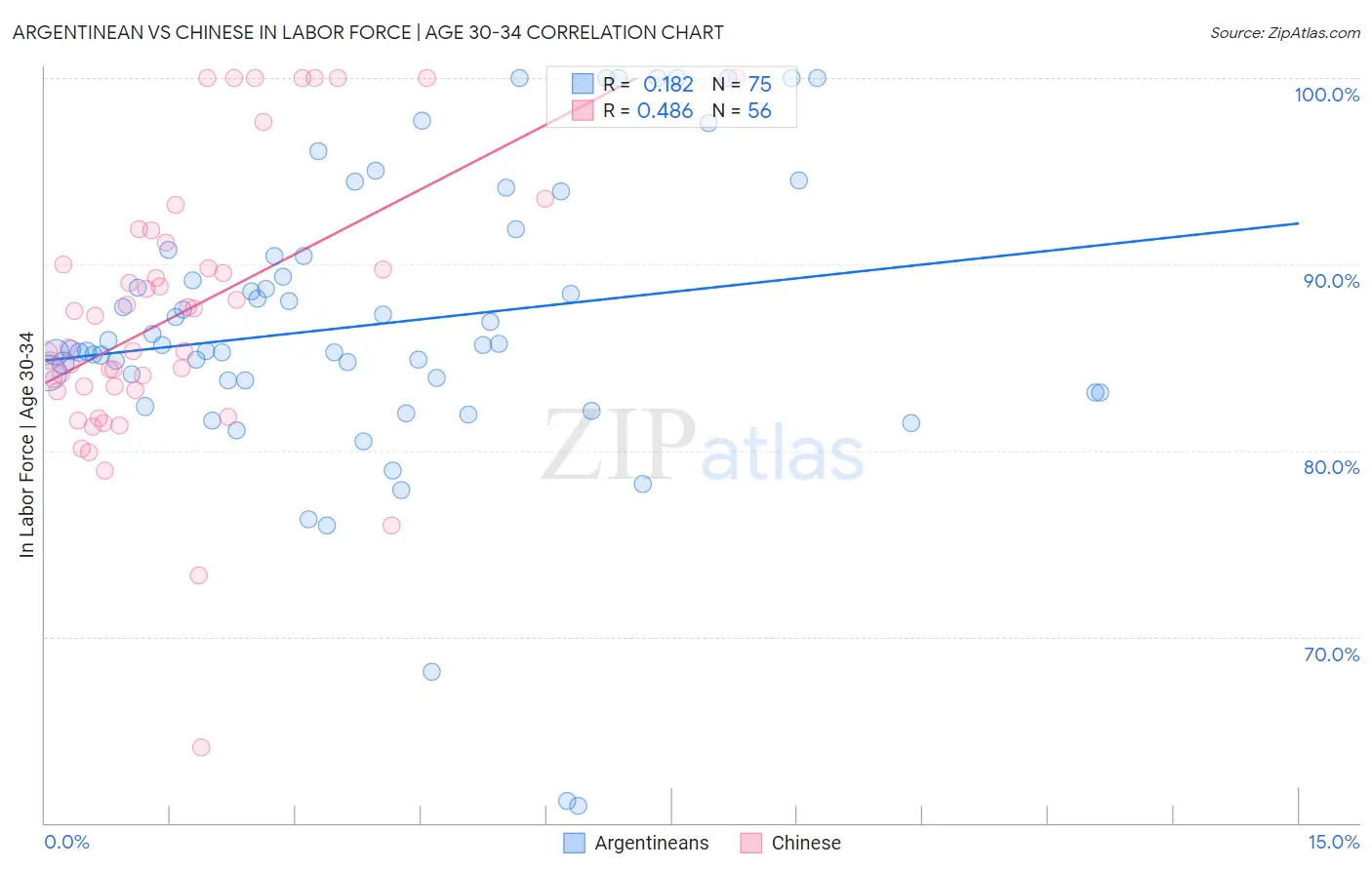 Argentinean vs Chinese In Labor Force | Age 30-34 Correlation Chart