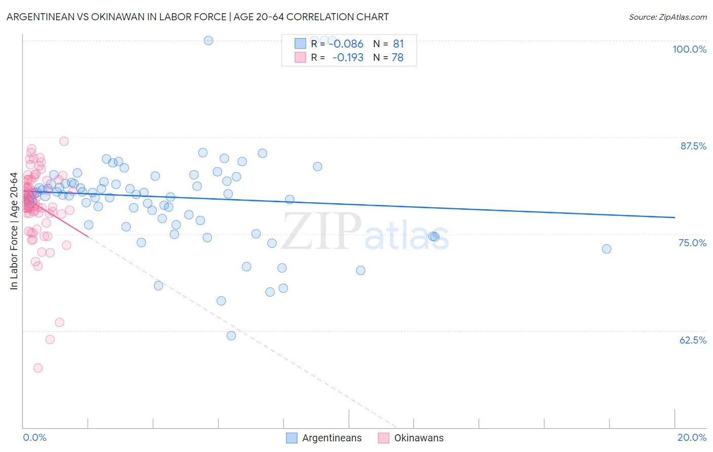 Argentinean vs Okinawan In Labor Force | Age 20-64 Correlation Chart