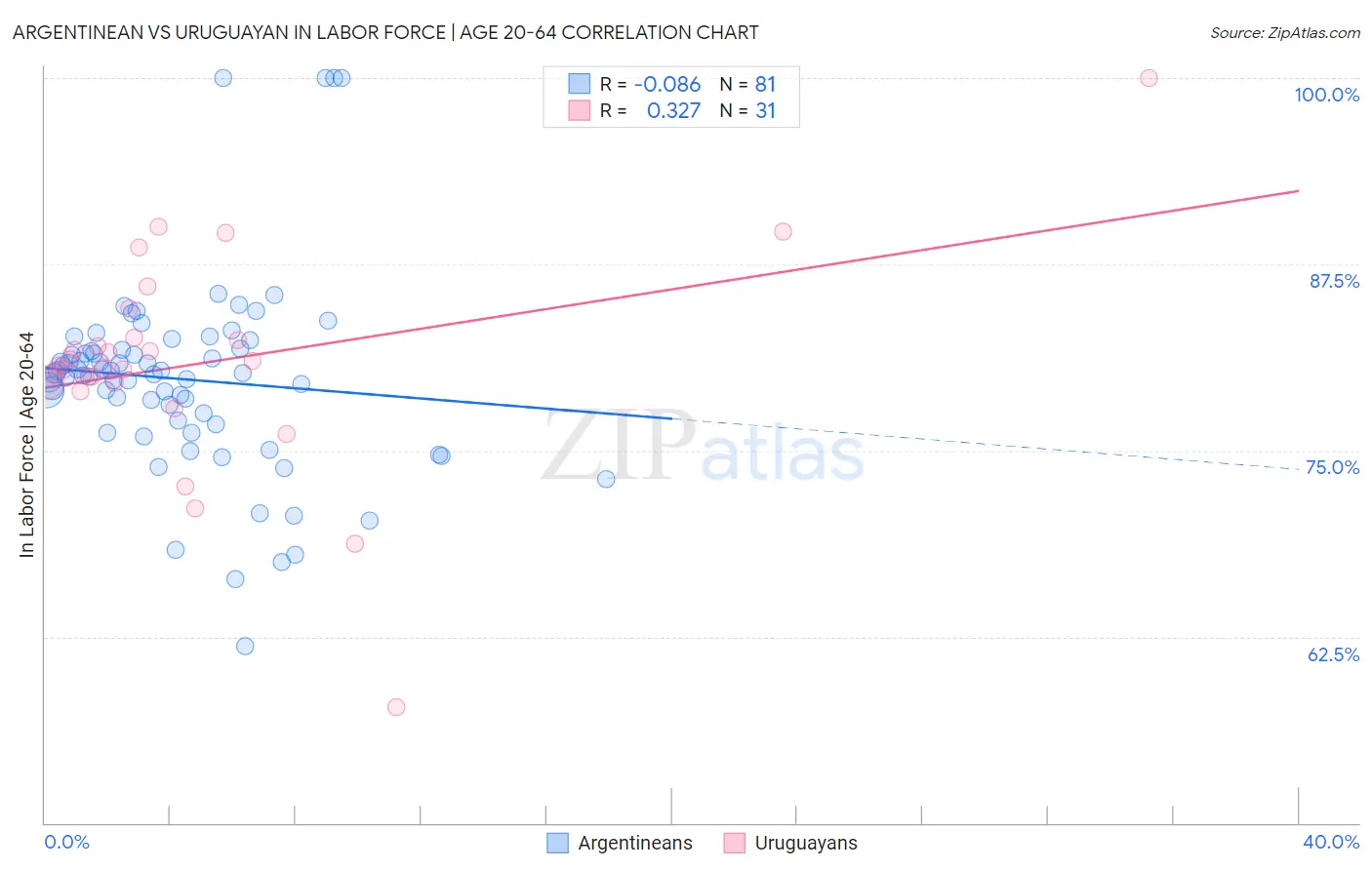 Argentinean vs Uruguayan In Labor Force | Age 20-64 Correlation Chart
