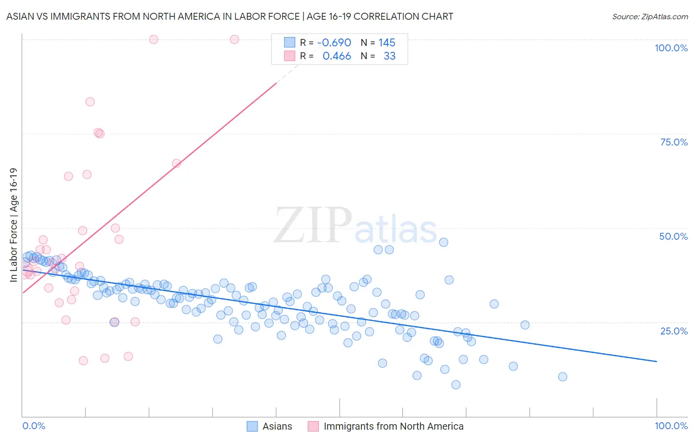 Asian vs Immigrants from North America In Labor Force | Age 16-19 Correlation Chart