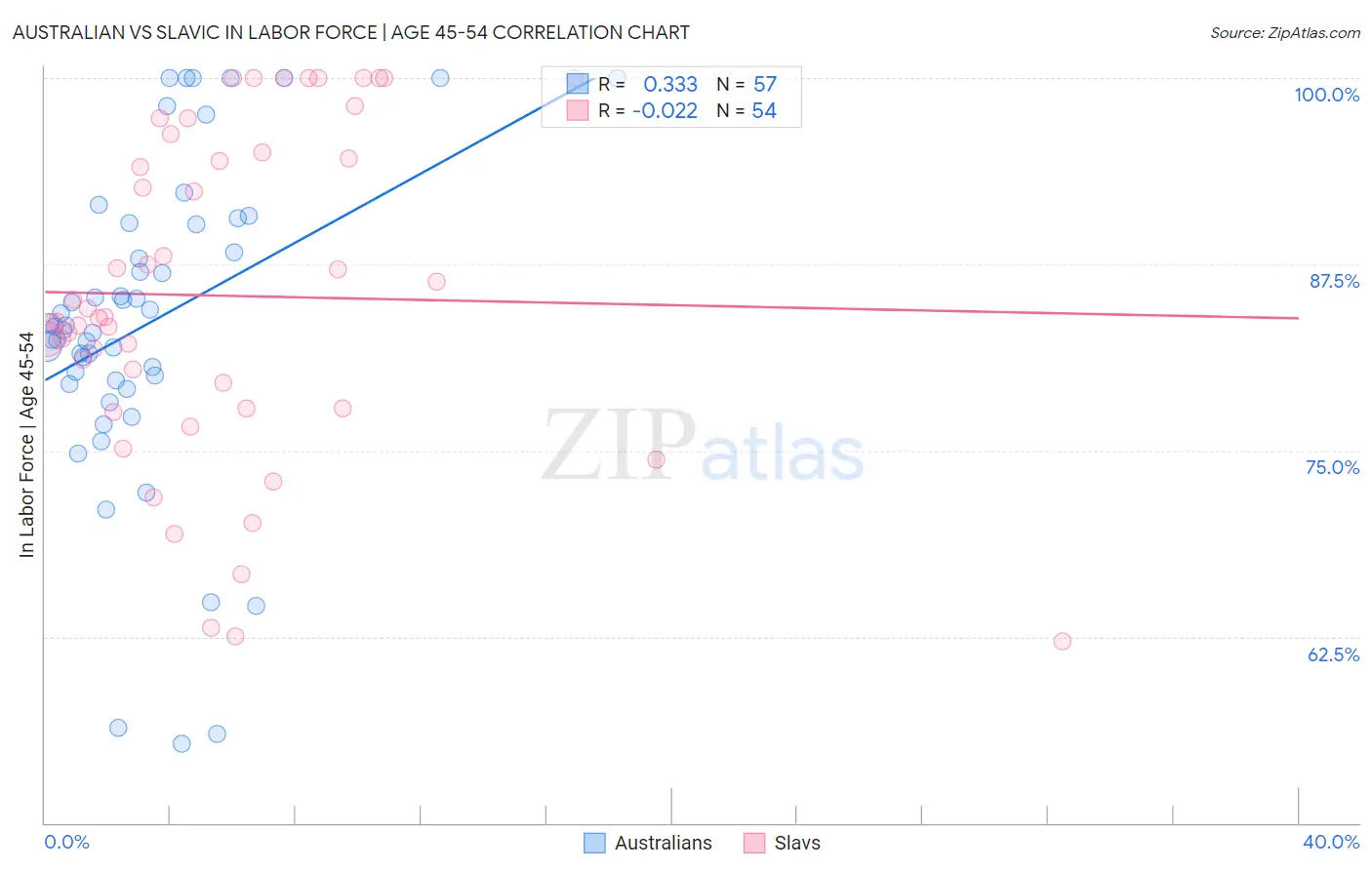Australian vs Slavic In Labor Force | Age 45-54 Correlation Chart