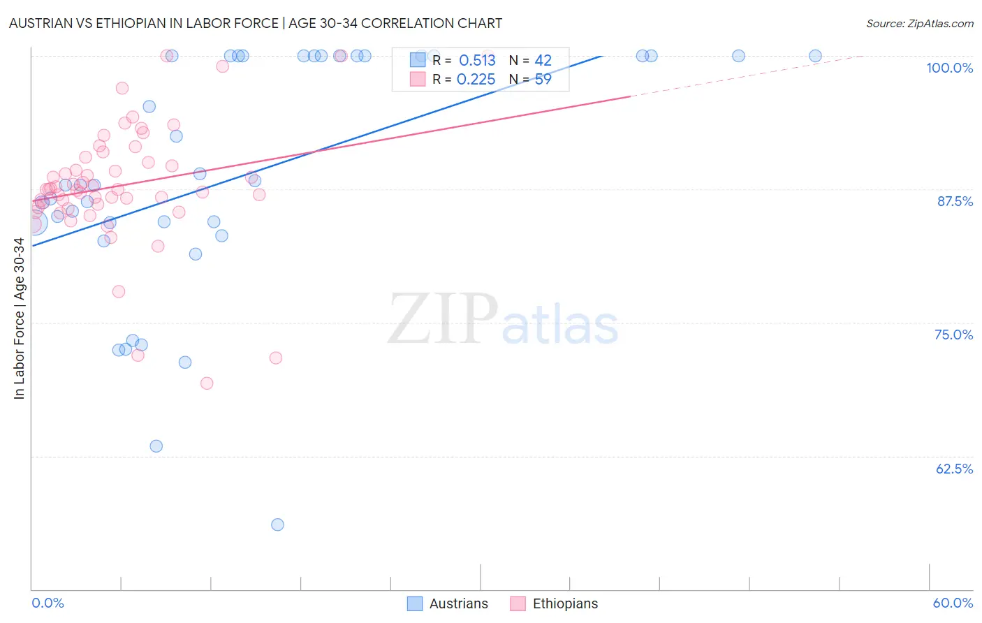 Austrian vs Ethiopian In Labor Force | Age 30-34 Correlation Chart