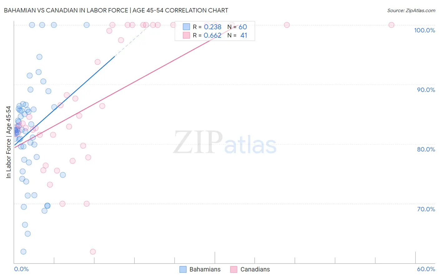 Bahamian vs Canadian In Labor Force | Age 45-54 Correlation Chart