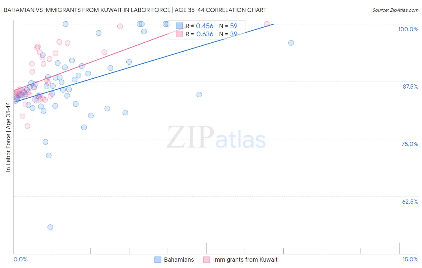 Bahamian vs Immigrants from Kuwait In Labor Force | Age 35-44 Correlation Chart