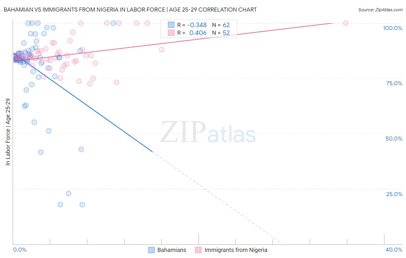 Bahamian vs Immigrants from Nigeria In Labor Force | Age 25-29 Correlation Chart