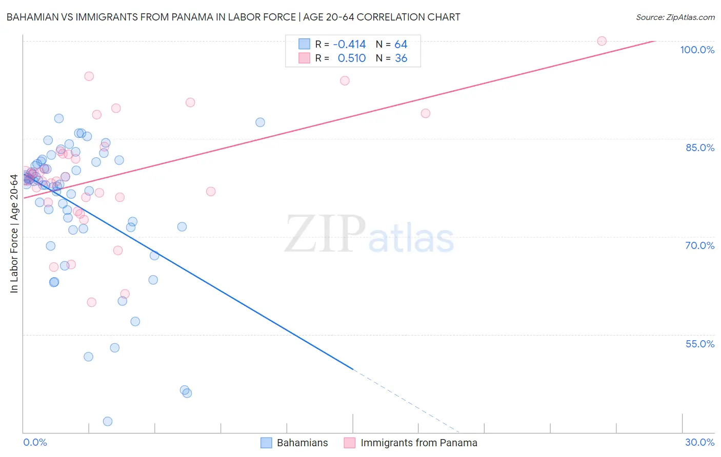Bahamian vs Immigrants from Panama In Labor Force | Age 20-64 Correlation Chart