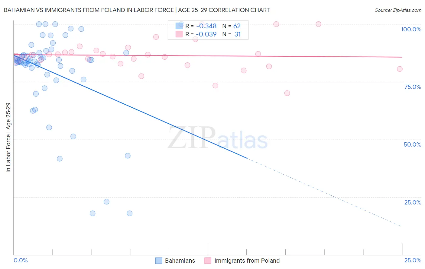 Bahamian vs Immigrants from Poland In Labor Force | Age 25-29 Correlation Chart