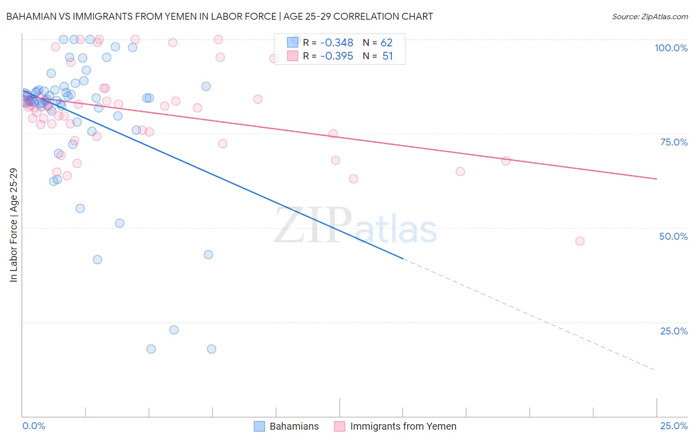 Bahamian vs Immigrants from Yemen In Labor Force | Age 25-29 Correlation Chart