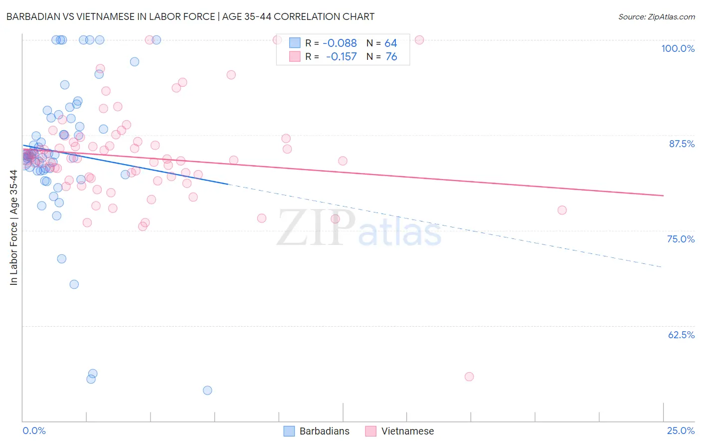 Barbadian vs Vietnamese In Labor Force | Age 35-44 Correlation Chart