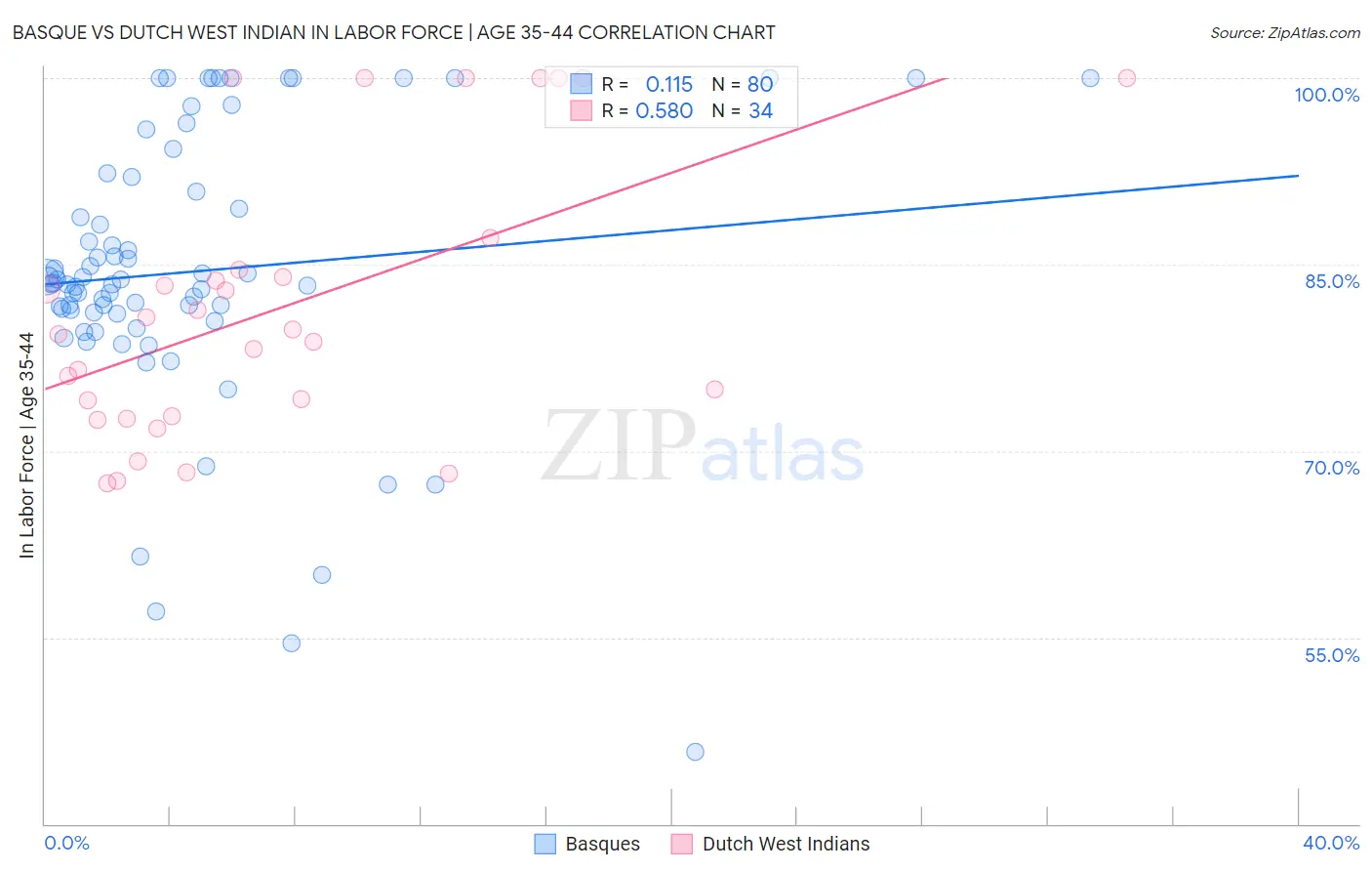 Basque vs Dutch West Indian In Labor Force | Age 35-44 Correlation Chart