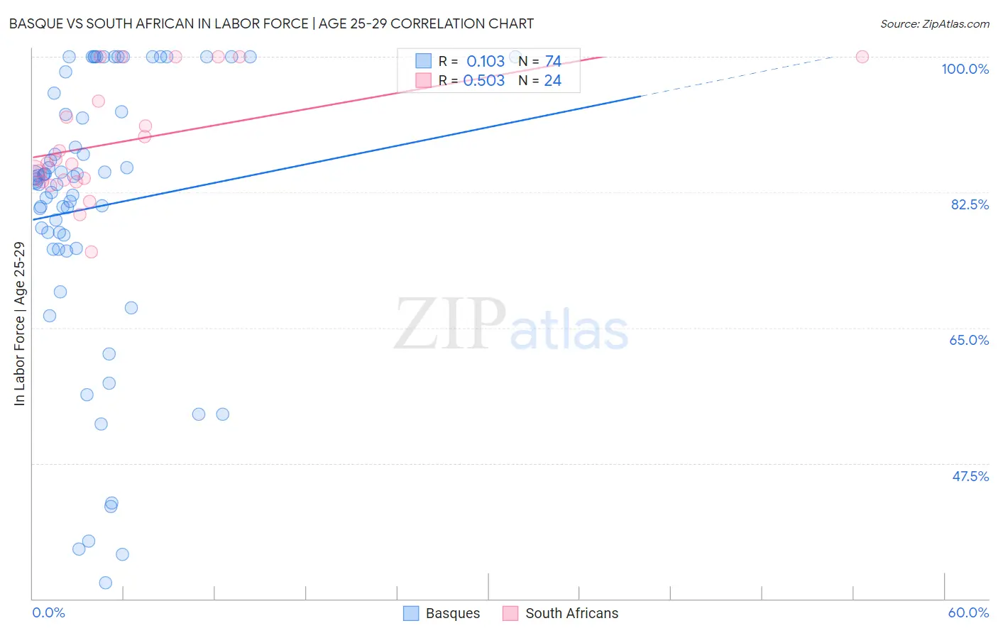 Basque vs South African In Labor Force | Age 25-29 Correlation Chart