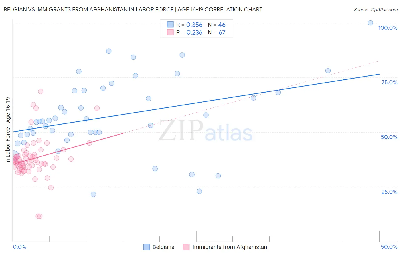 Belgian vs Immigrants from Afghanistan In Labor Force | Age 16-19 Correlation Chart