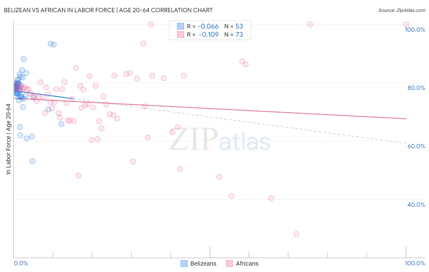 Belizean vs African In Labor Force | Age 20-64 Correlation Chart
